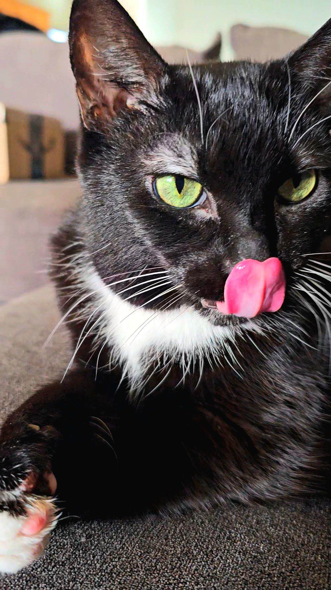 Smucky, the cat eating appendix
