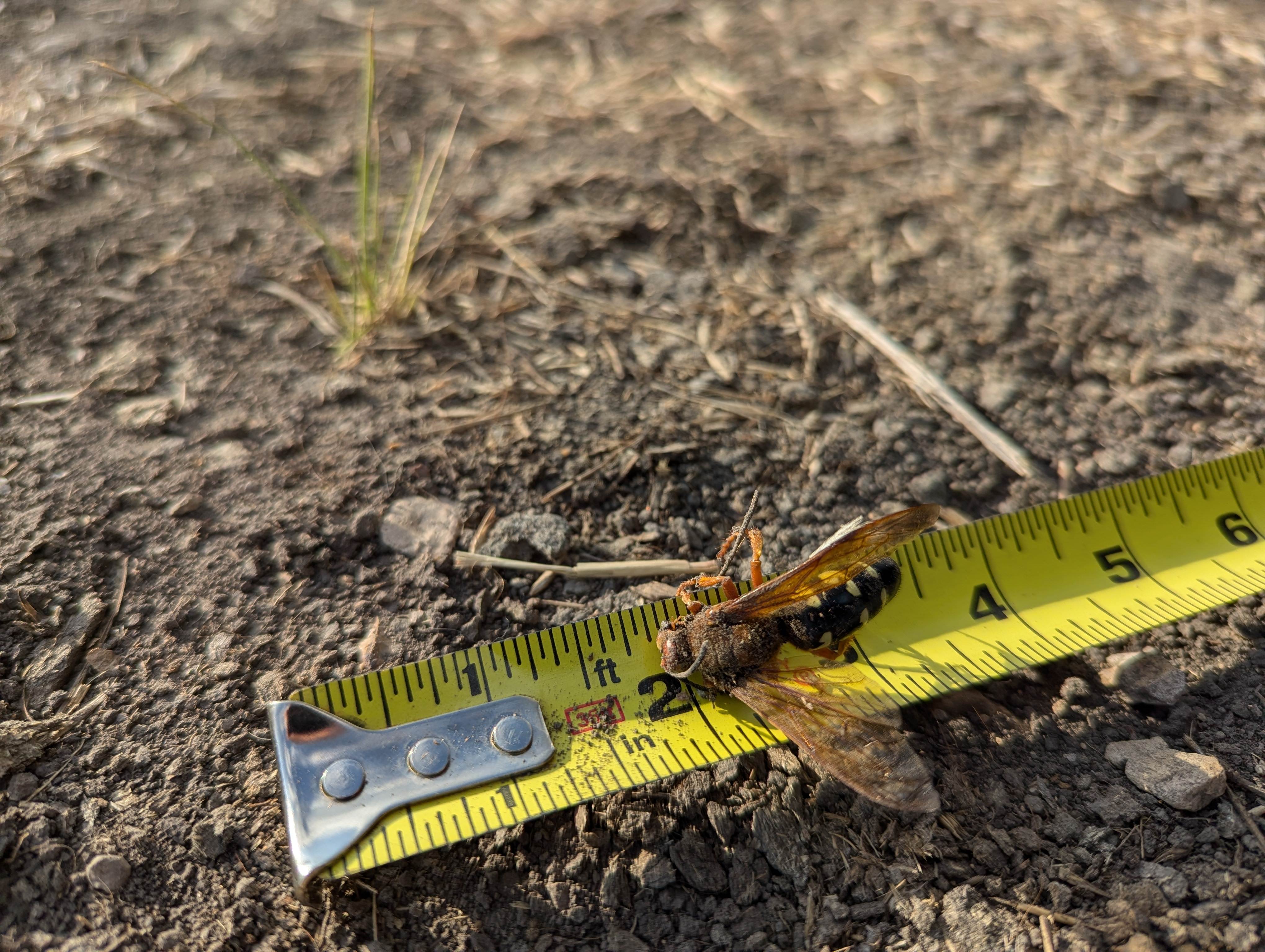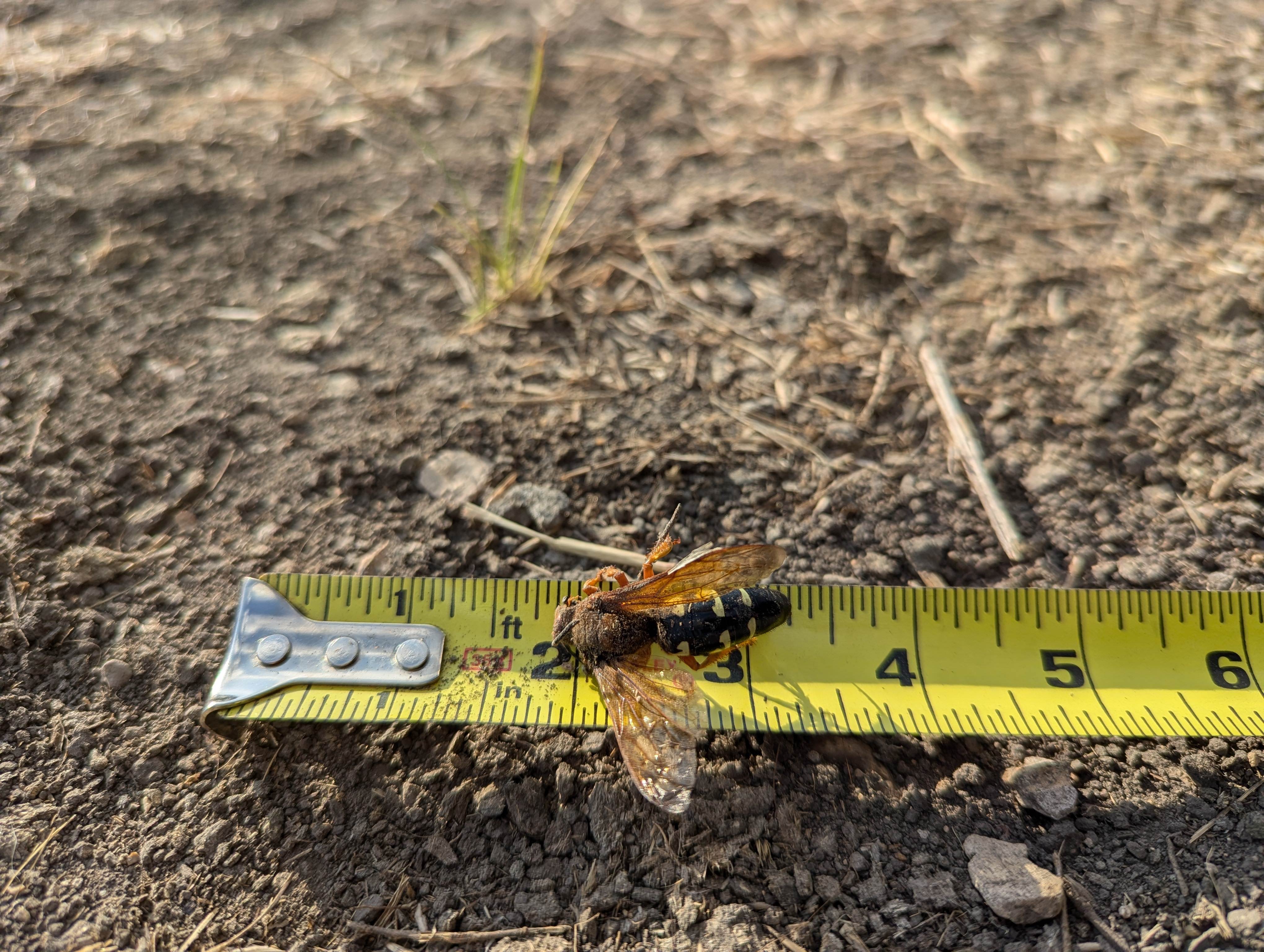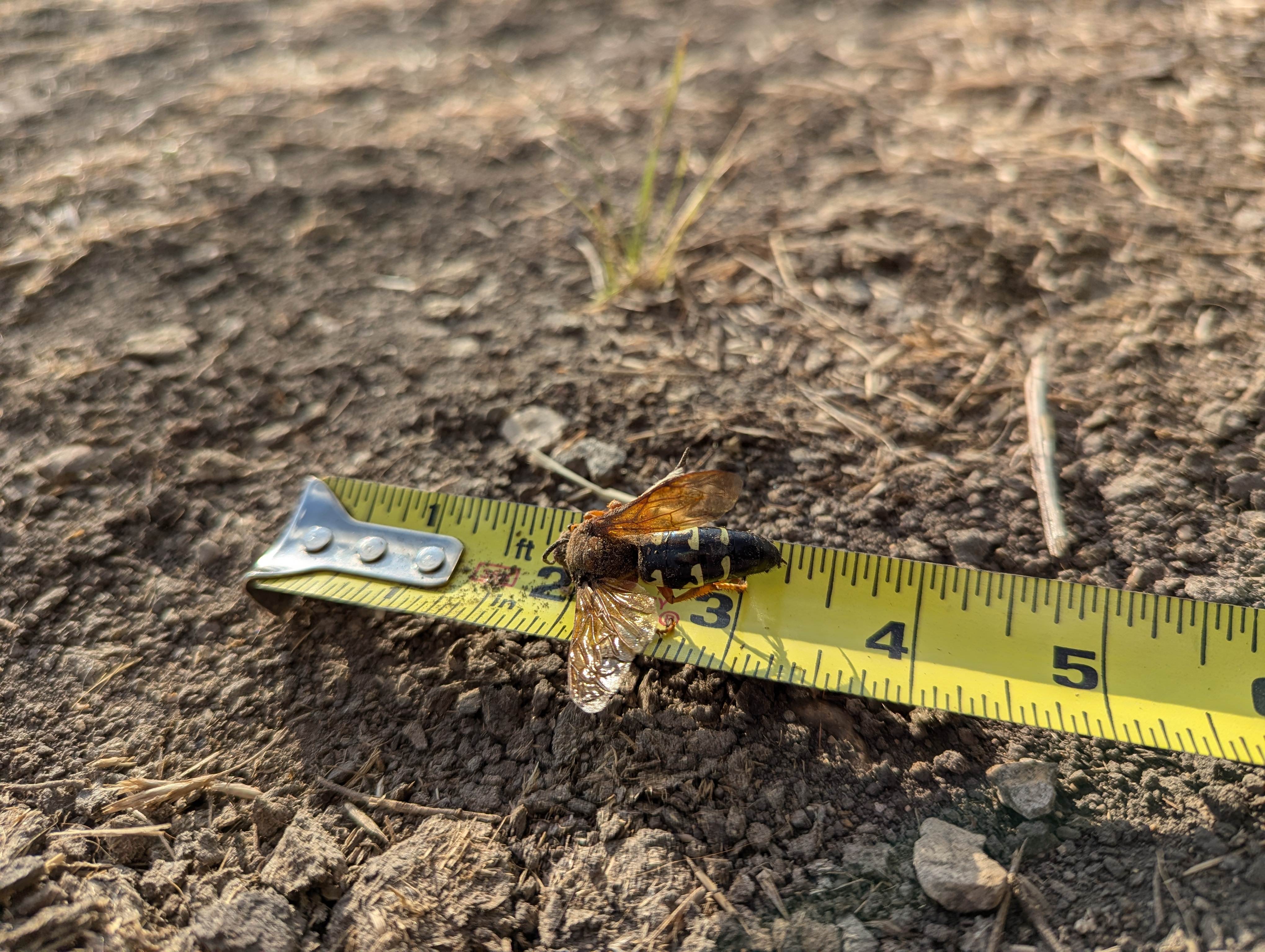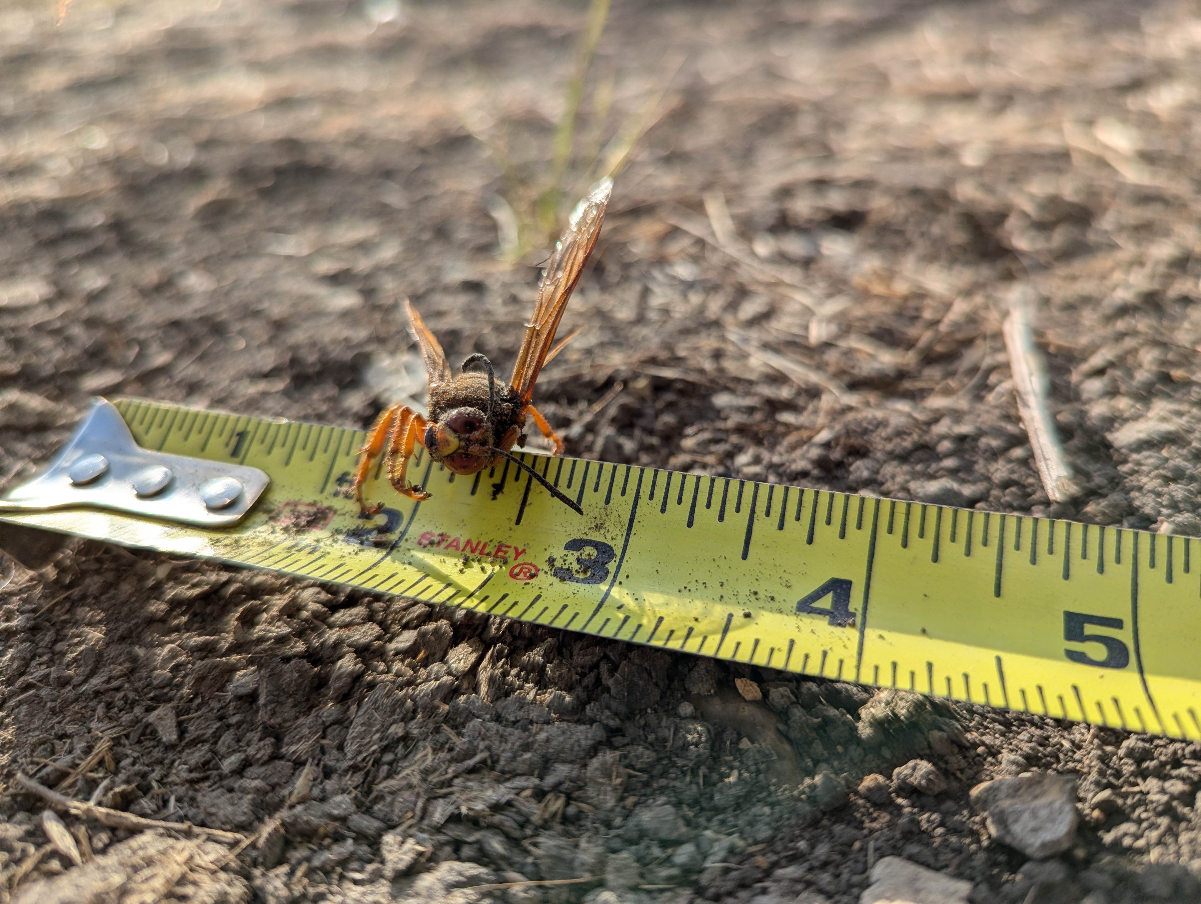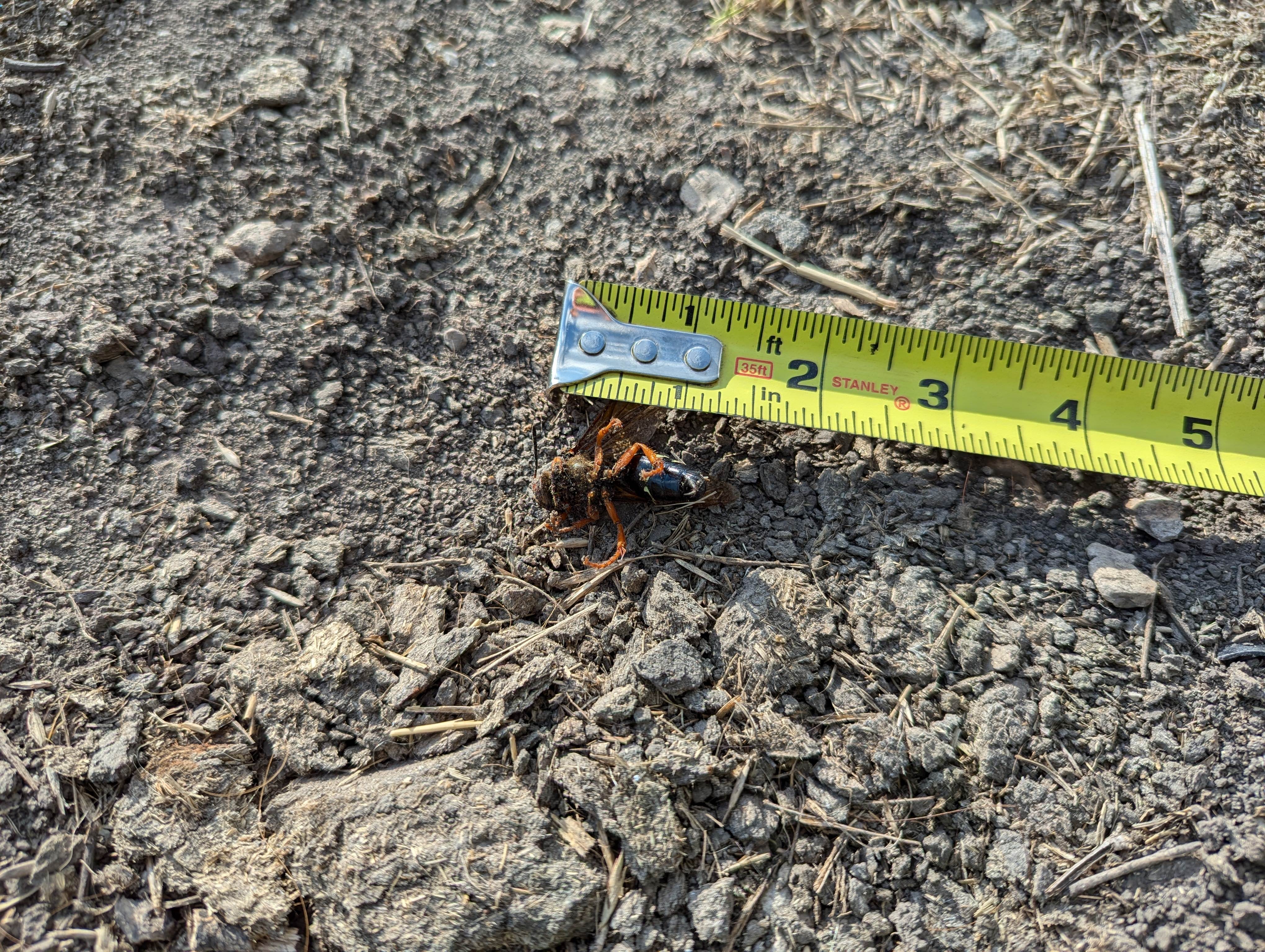 This giant hornet thing kept dive bombing me so I smacked it with a stick then poured gas on it to stop it squirming. Someone look it up, what is it. Got like a half inch long stinger :scared: