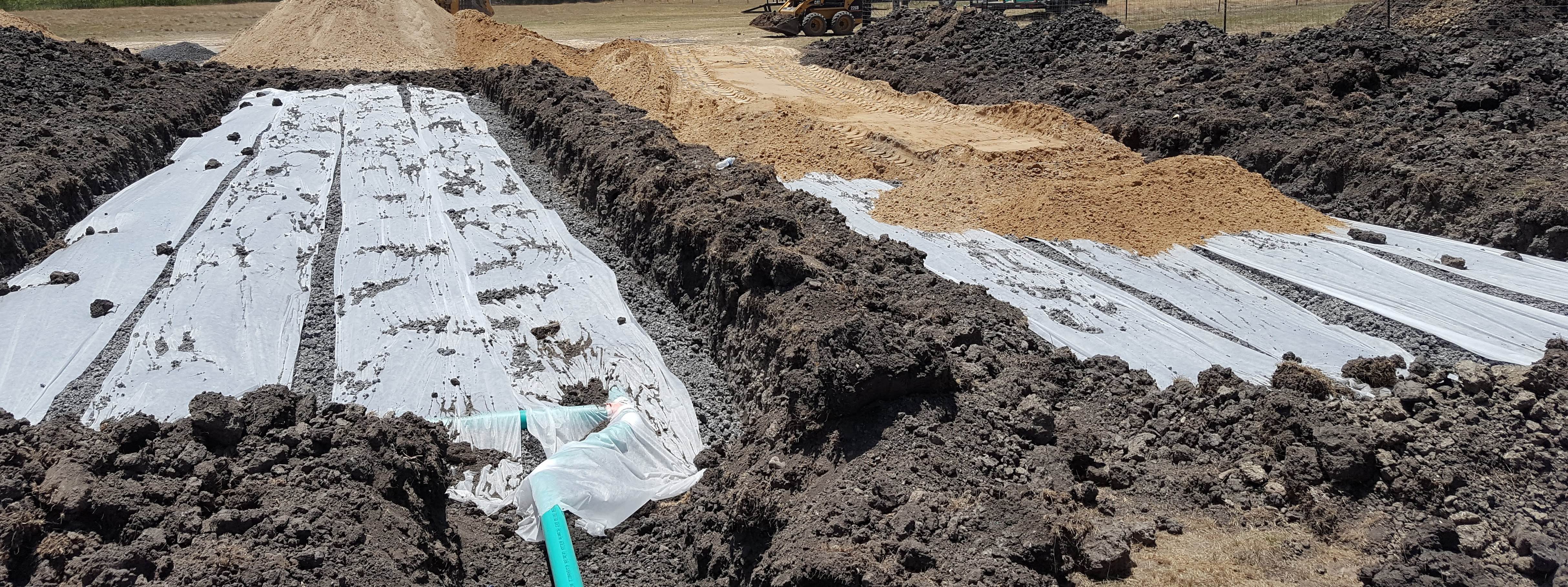 And since we are on solid clay, the drain field is buried in gravel and sand. There are two drain fields and a switch to choose which one you want so you don't over use one.