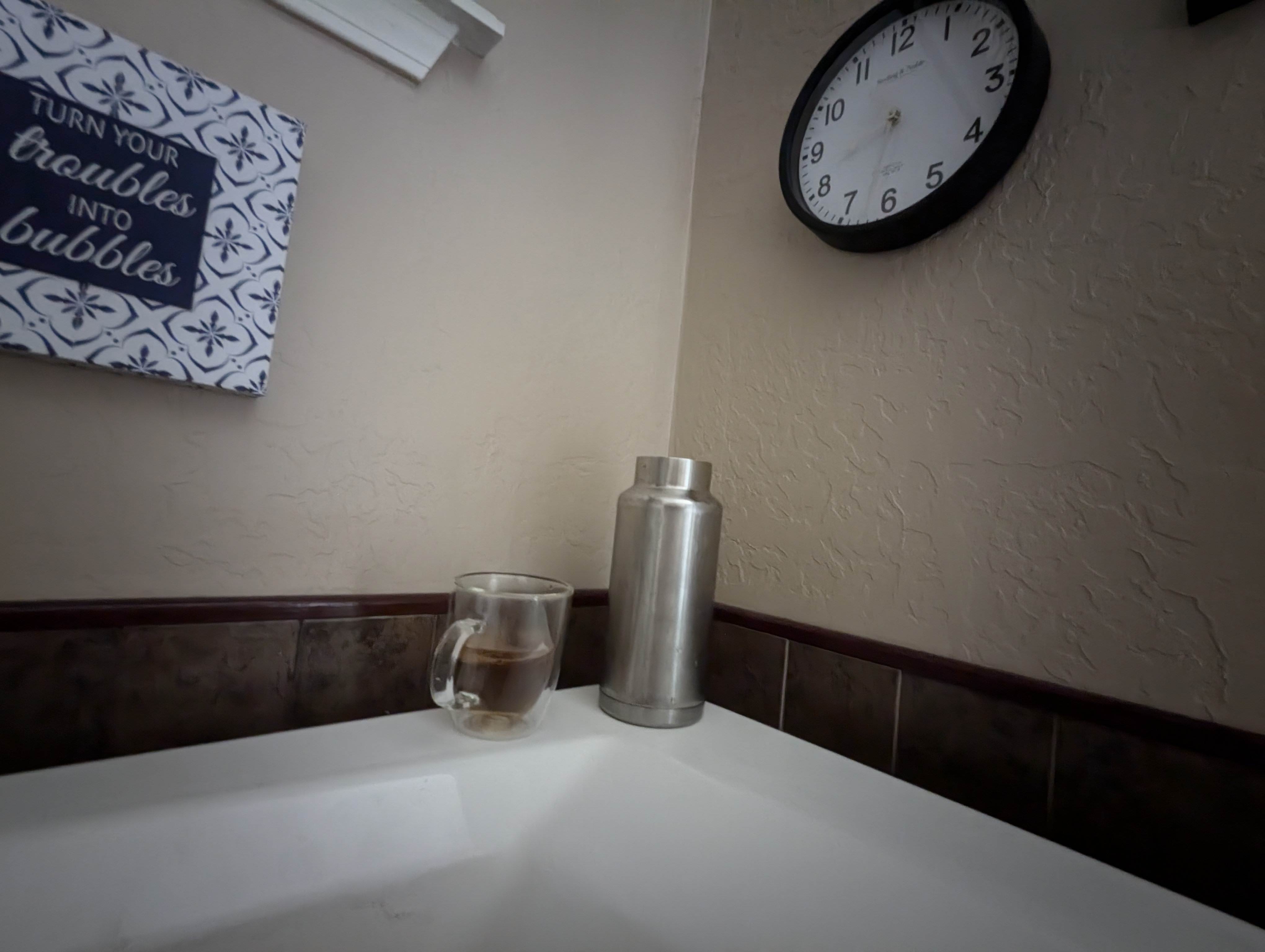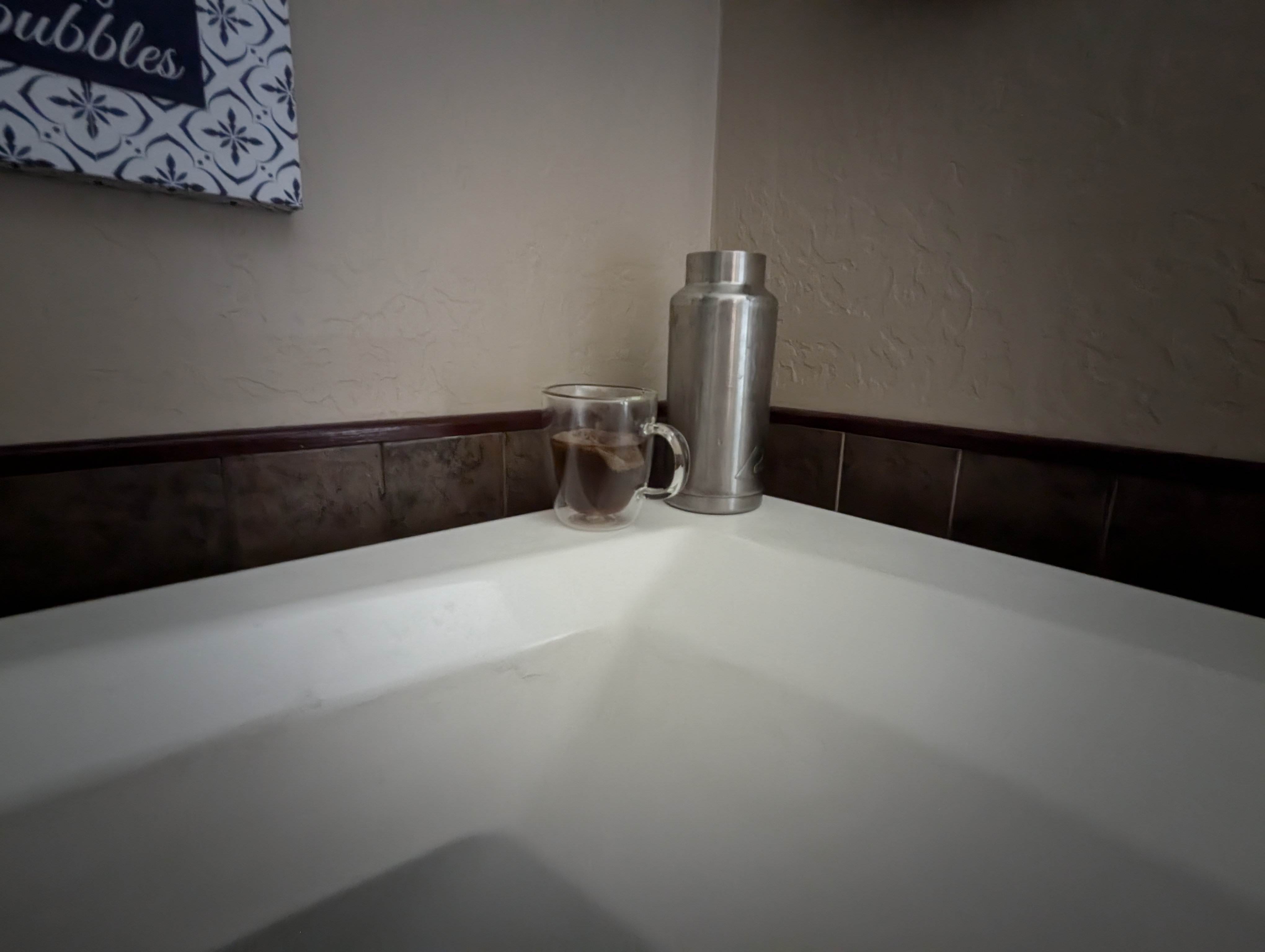 After a day of picking up rocks, time for a soak. Even brought a cup of tea with me this time