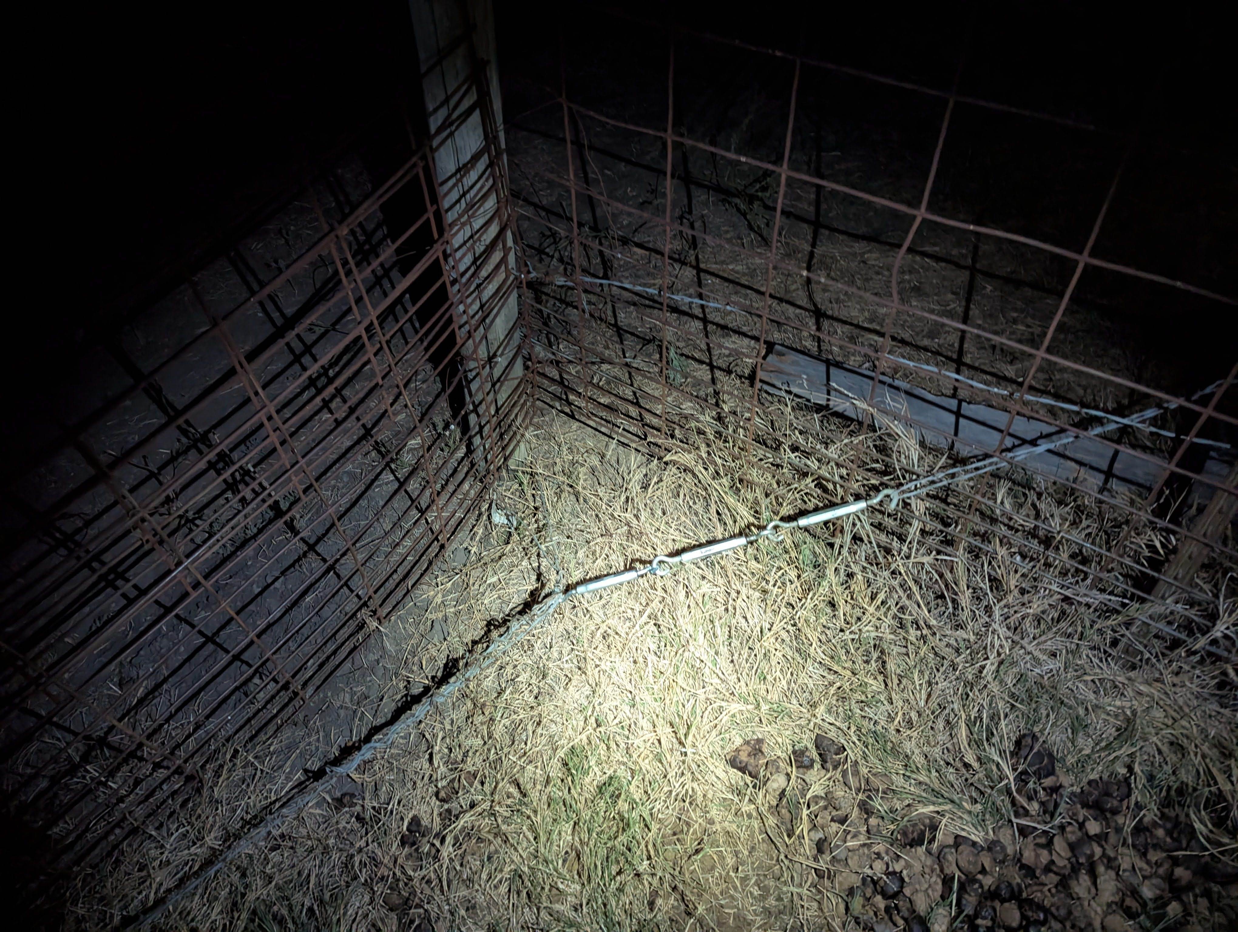 Replaced the cum-along rope set up with a barbed wire "cable" and turnbuckles. And that was all I had time for